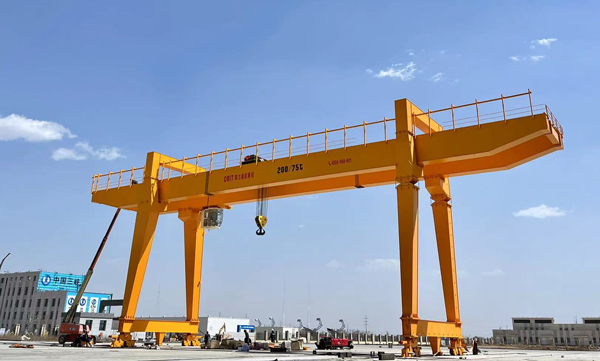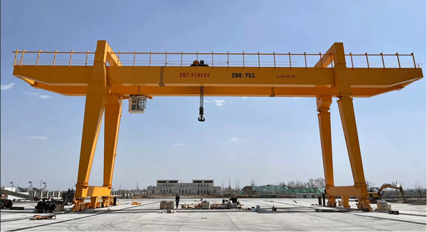 采用柔性技術和優(yōu)化設計的奧力通200tx52m雙梁門式起重機,如大漠雄鷹,屹立在內蒙古烏蘭察布市運達風電智能產業(yè)基地。