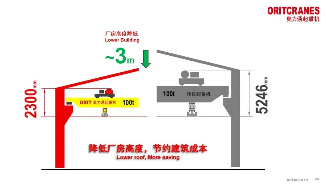 奧力通起重機的另一大優勢在于其高度矮化設計,顯著提升了廠房內的吊裝高度。這一創新設計不僅增加了產品的翻轉及吊裝空間,更為企業的生產效率提供了可靠保障。