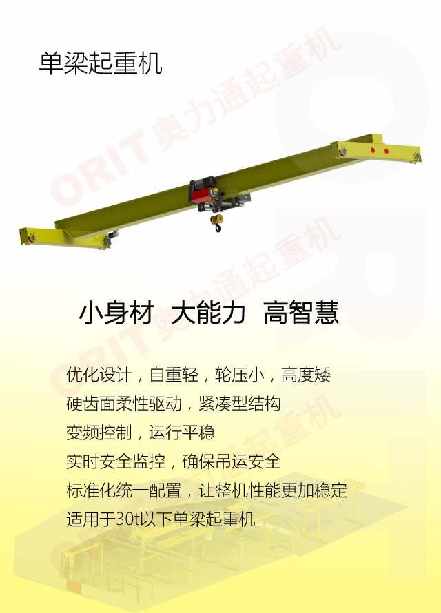 奧力通集起重機研發、制造、銷售、安裝、服務于一體,公司主要生產起重機、橋式起重機、門式起重機、雙梁起重機、單梁起重機、歐式雙梁橋式起重機、歐式單梁橋式起重機、歐式懸掛起重機、多支點懸掛起重機、歐式雙梁門式起重機、歐式單梁門式起重機、歐式半門吊、歐式壁行吊、歐式懸臂吊、歐式輕型起重機等通用標準起重機,以及全自動智能化起重機、冶金類起重機、防爆類起重機、航空專用起重機、核電站專用起重機、造紙專用起重機、電廠起重機等特殊專用起重機。